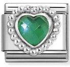 330606/004 Classic FACETED STONES, steel, 925 silver HEART with DOTS RICH SETTING GREEN