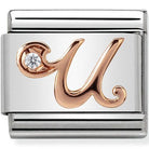 The perfect charm to personalise your bracelet - the Classic Rose Gold Letter U Charm by Nomination. This sparkling charm is crafted from stainless steel, detailed with a rose gold letter U and finished with a shimmering cubic zirconia stone.