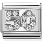 Classic Silver Number 50 Link is an ideal choice for anyone looking to personalise their Nomination Composable bracelet with a meaningful number. Its sleek design and shimmering Cubic Zirconia make it a timeless addition that celebrates special milestones with subtle elegance.