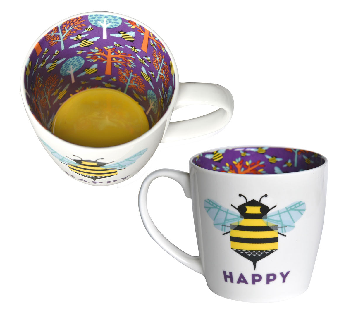 Brighten your day with the Inside Out Bee Happy Mug! This quirky mug features a cheerful bee design and comes in a gift box, perfect for spreading positivity.