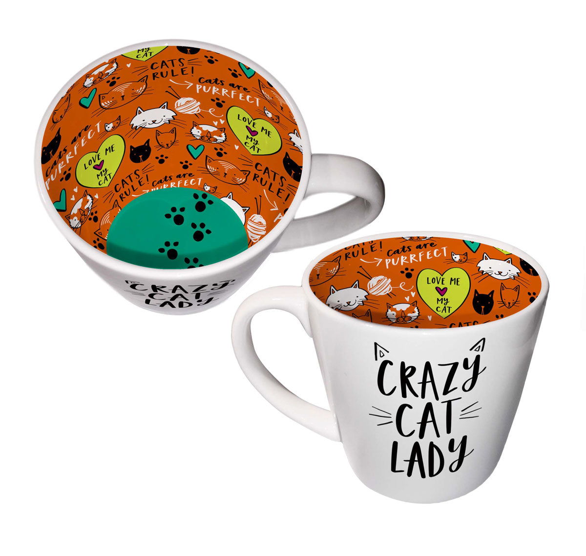 Shop our Inside Out Mug with Gift Box! Perfect for the Crazy Cat Lady, this quirky mug features fun designs inside and out. Ideal gift for cat lovers!