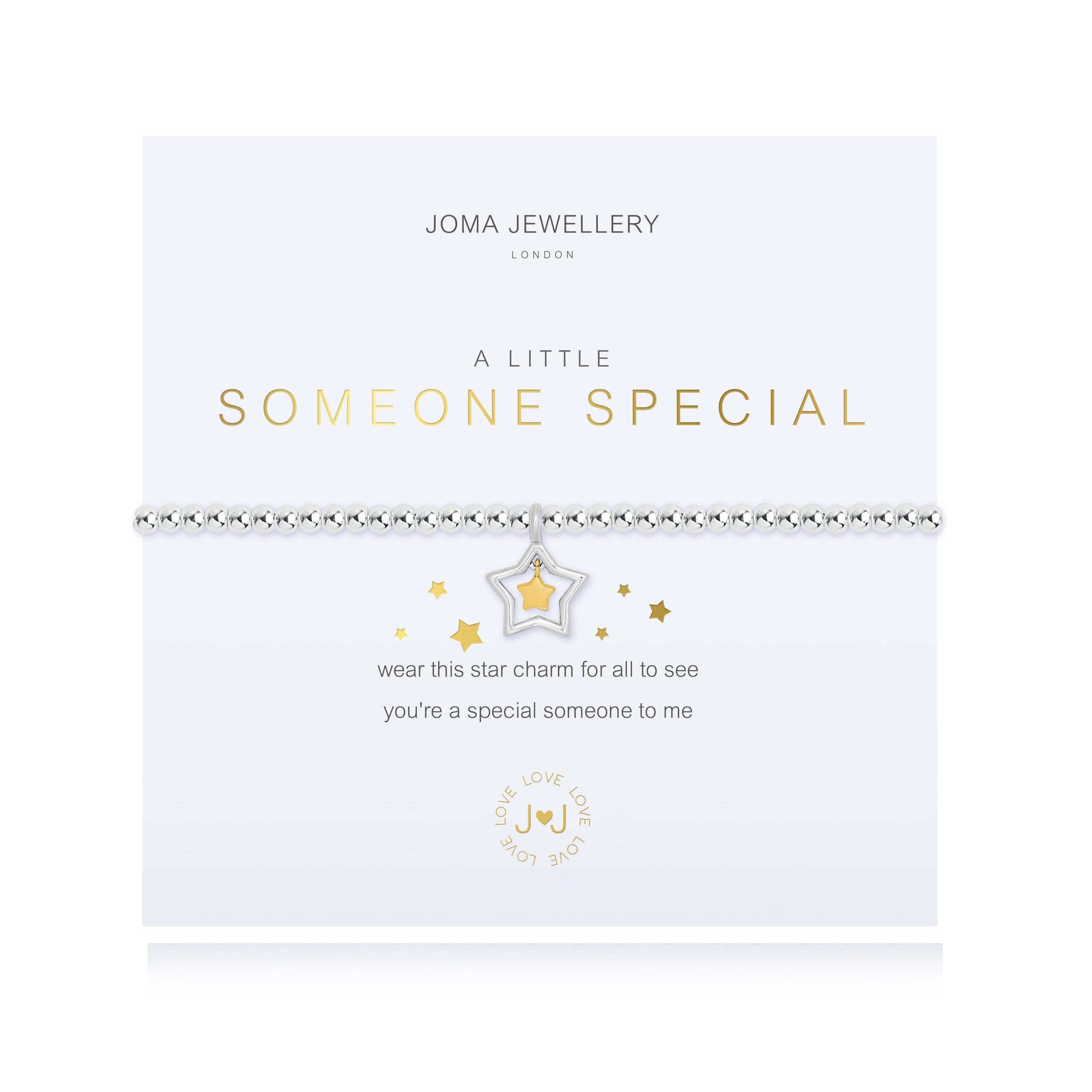 Silver and gold stars on a silver-plated stretch bracelet, wrapped around a lovely star decorated card, finished with a sweet poem and meaningful sentiment.