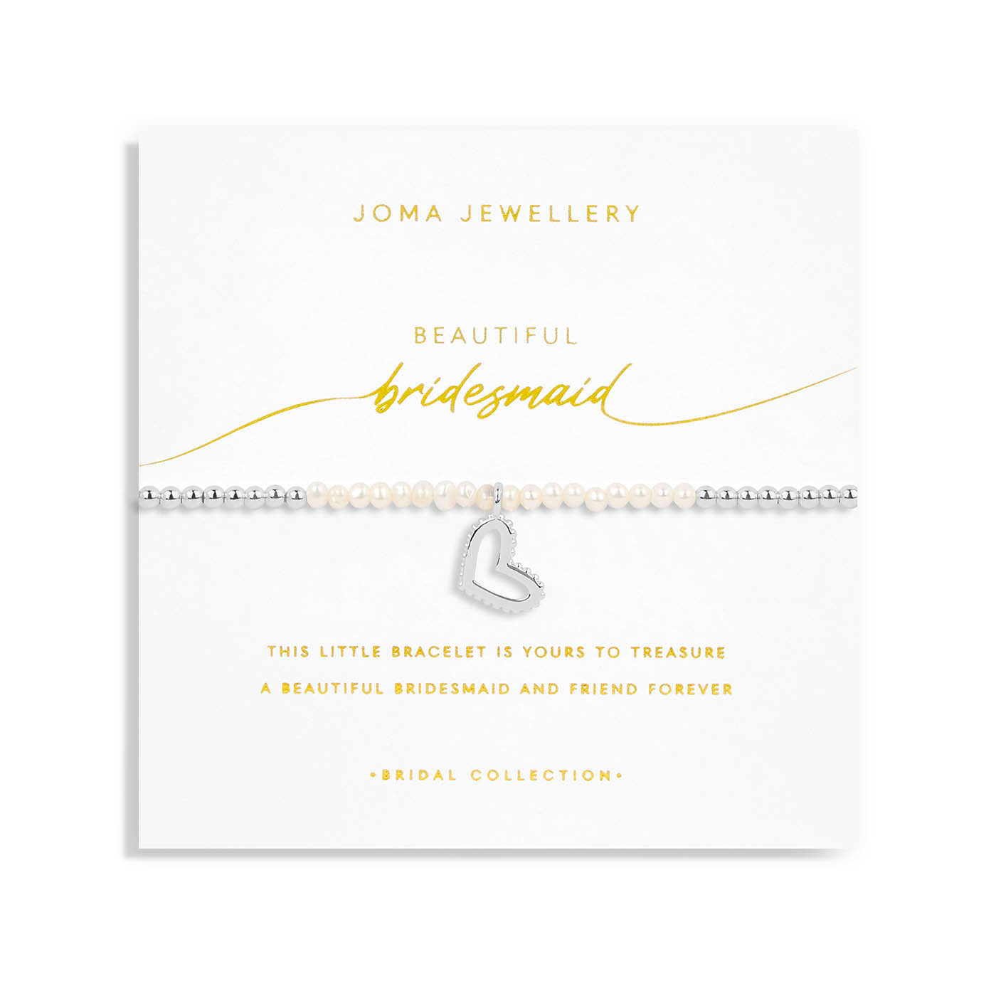 Designed to complement the glamour that surrounds the big day, our 'Bridesmaid' Bracelet features luxe silver-plated beads, threaded with shimmering mother of pearl gemstones and a heart-shaped charm.