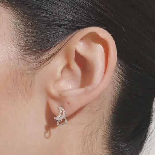 These stunning silver-plated earrings feature an interlocked heart and moon design, adorned with sparkling pavé detail that captures the magic of cherished connections. Presented on a blush card with the heartfelt message, "You're loved to the moon and back now and always," these earrings are a beautiful way to show just how much they mean to you.