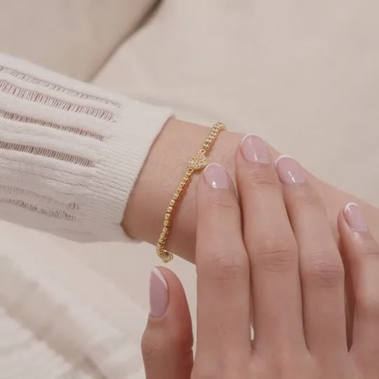 Featuring Joma Jewellery's signature beaded design that ensures a comfortable fit on any wrist, this bracelet is crowned with a special gold-plated pavé heart charm to share the birthday love.
