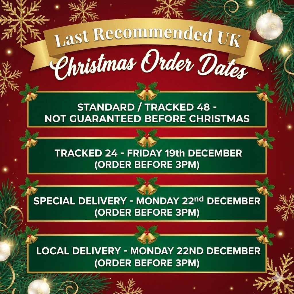 We will be closed Christmas Day, Boxing Day & New Years Day