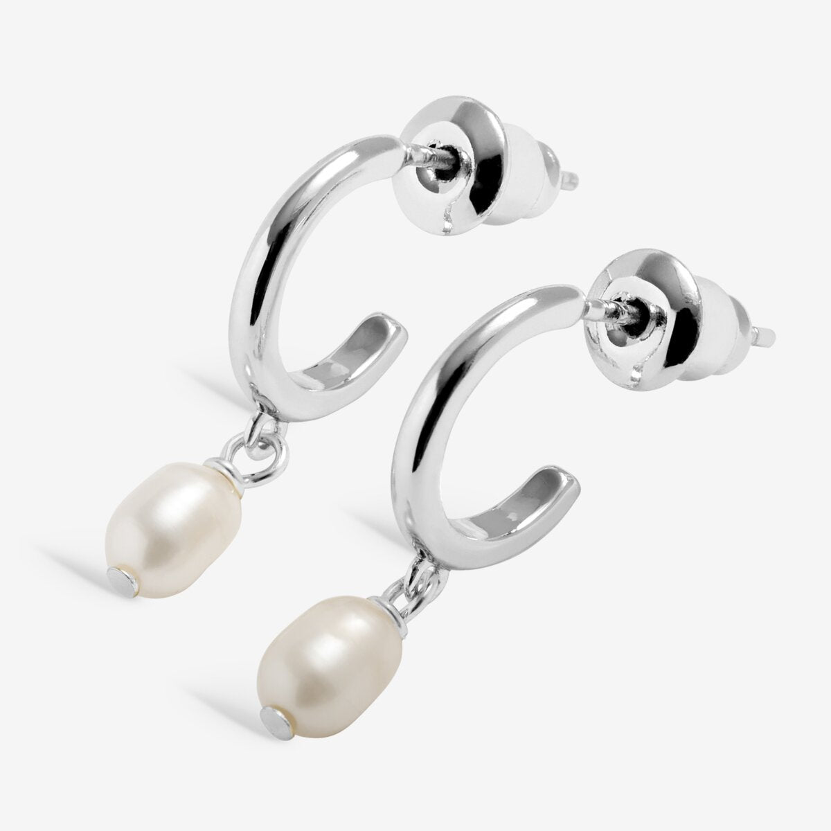 A standout piece in our mix-and-match Loved By You Collection, these earrings combine the classic beauty of pearls with a contemporary silhouette. Featuring natural freshwater pearl drops suspended from shimmering silver-plated huggie hoops, they are designed to bring a sophisticated, lustrous finish to your everyday look or a special occasion ensemble.