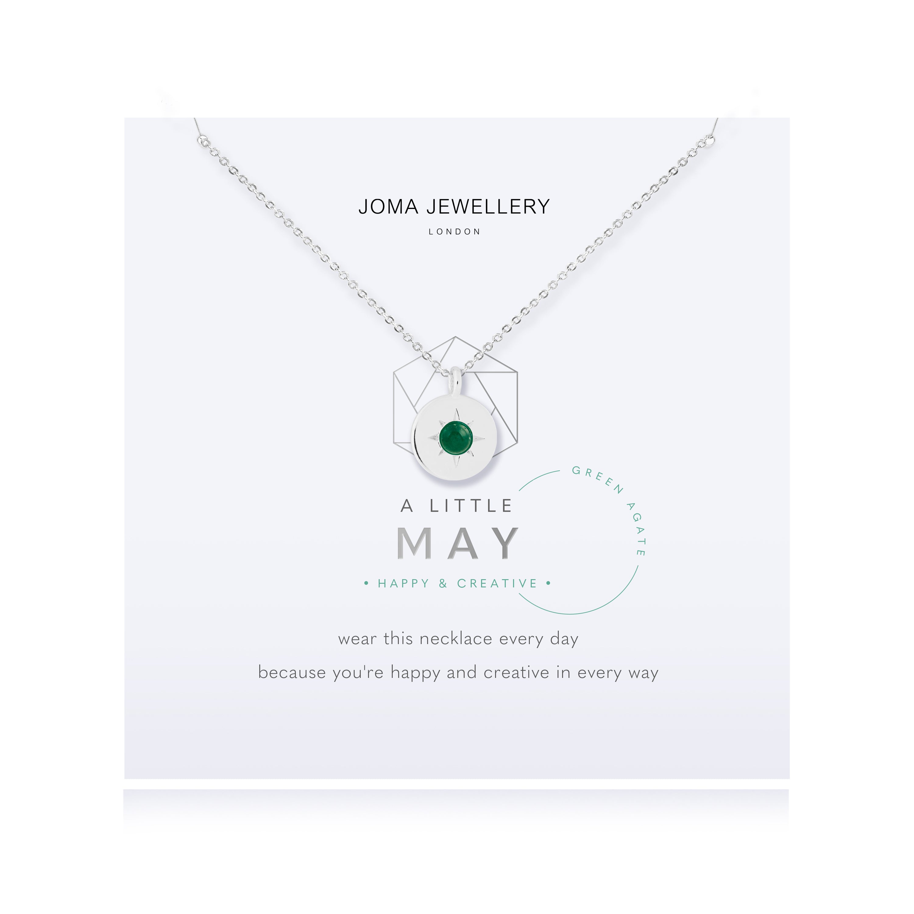 Celebrate a May birthday in the most special way with our May Green Agate Birthstone 'A Little' Necklace! This silver-plated necklace includes a small disc charm with a real semi-precious gemstone at the centre to reflect a happy and creative nature. You'll never want to take it off!