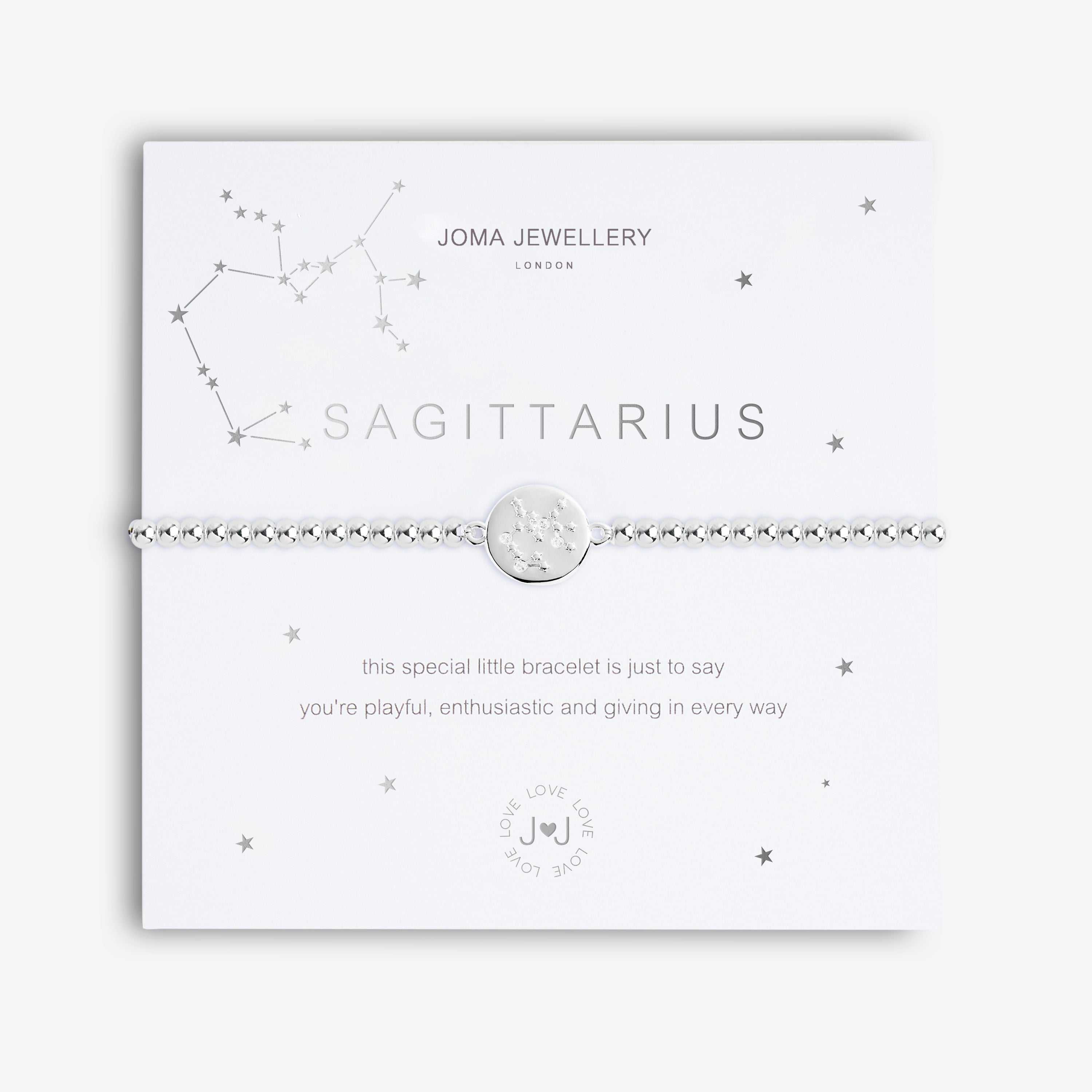 A Joma Jewellery Sagittarius star sign bracelet with gift bag . Gems representing the constellation for a birthday between November the 22nd and December the 21st.