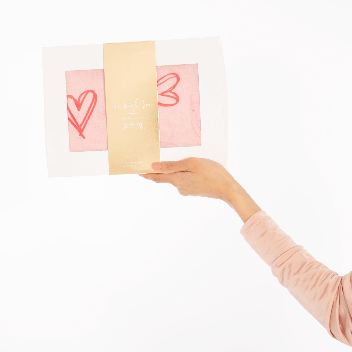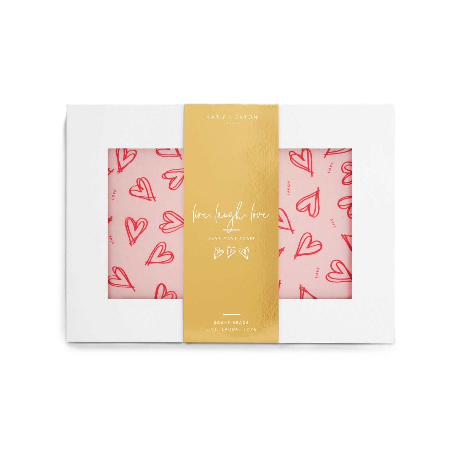 Katie Loxton Boxed Sentiment Scarf - Live Laugh Love - Blush Pink / Red